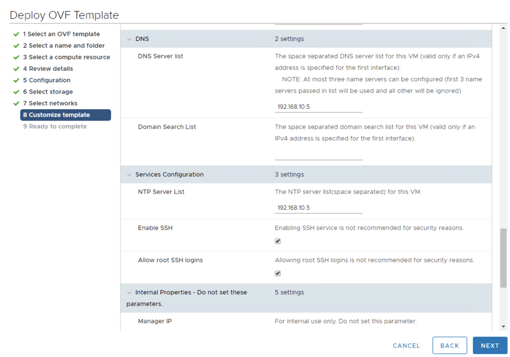 Finally before deploy the CSM, make sure to use the correct DNS and NTP server for your environment