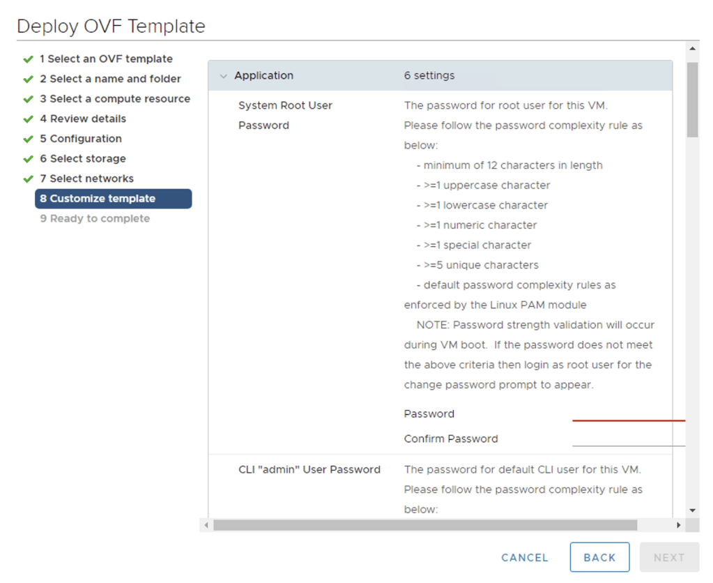 You must configure the System Root User Password and the CLI “admin” User Password. The others are optional and I just left them blank