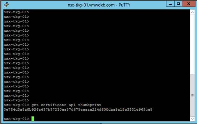 Step 2: On the NSX-T Manager terminal run the following command: get certificate api thumbprint