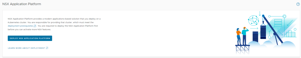 The NSX Application Platform deployment process is fully orchestrated through the NSX UI and requires a supported Kubernetes environment. Refer to the Deploying and Managing the VMware NSX Application Platform guide for more information on the infrastructure prerequisites and requirements for installation.