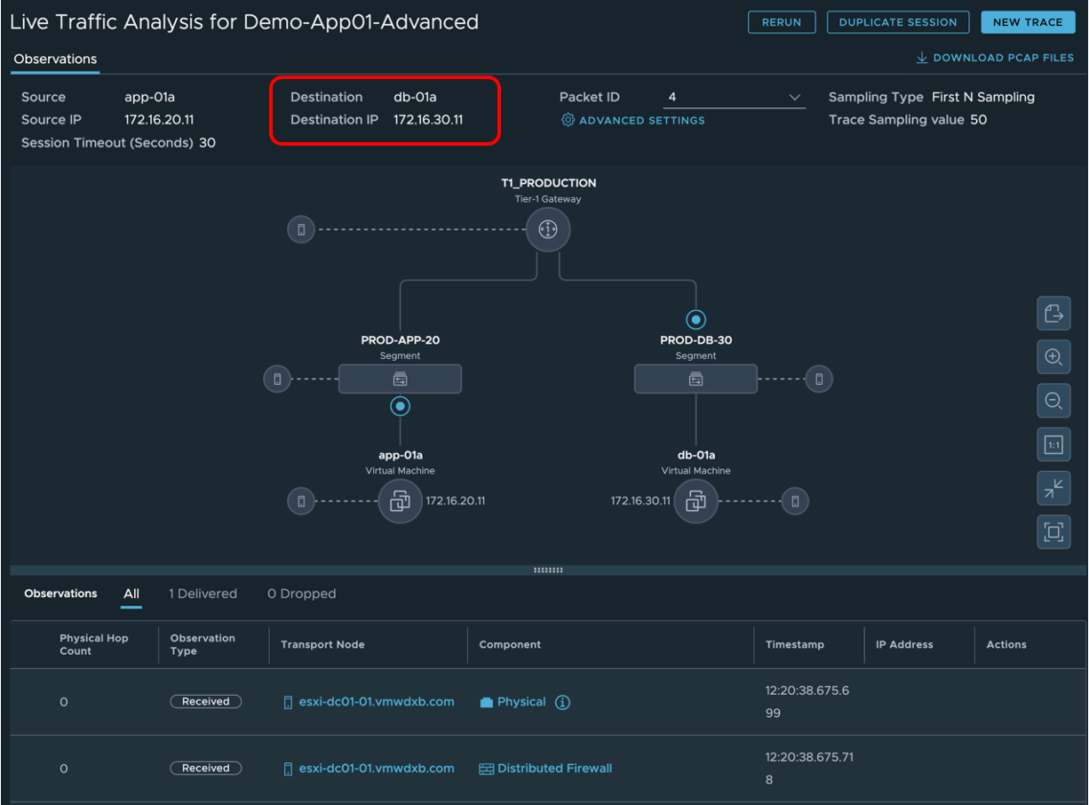 NSX Live Traffic Analysis