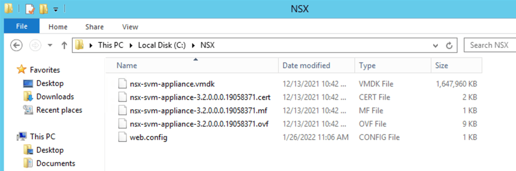 The Web server must be accessible to NSX Manager, all ESXi hosts where you plan to deploy the NSX Malware Prevention SVM, and the vCenter Server that is registered to NSX-T.