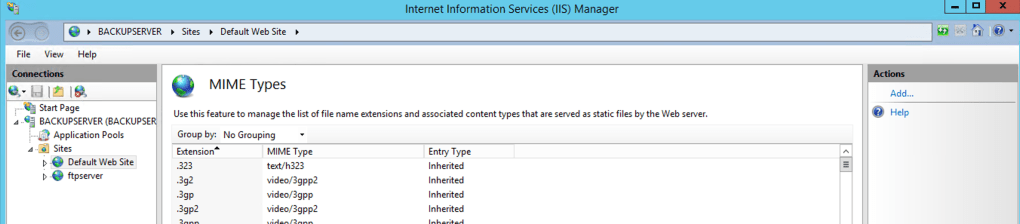 Click on the Mimes Icon to add the 4 extension listed above – top right in blue add