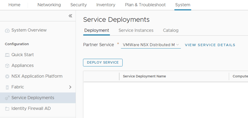 In NSX Manager, navigate to System > Service Deployments > Catalog.