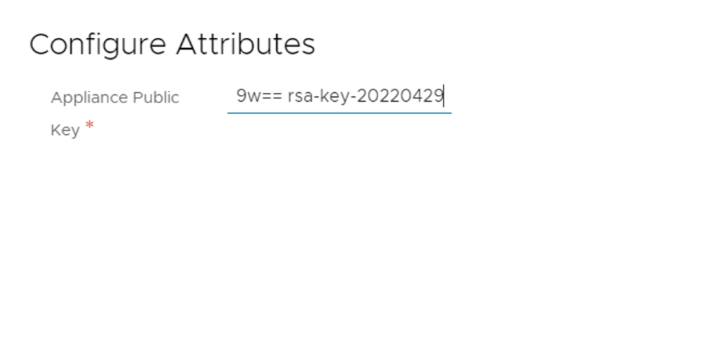 Now we need to populate the Configure Attributes field, this is the ssh key which we copied from that box when we generated the Public-Private key. The one below: