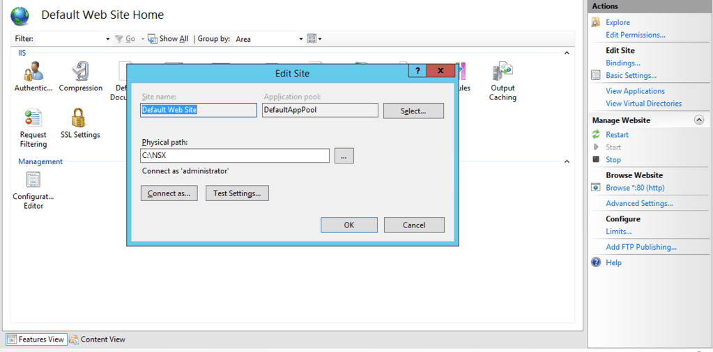 Copied the 4 extracted files to a directory I named NSXIIS Web Server enabled locallyBindings simply on port 80