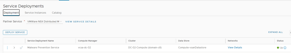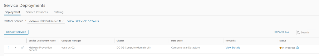 You can also monitor some progress from the NSX Manager, go to System -> Service Deployments ->Service Instances -> Select VMware NSX Distributed Malware Prevention Service