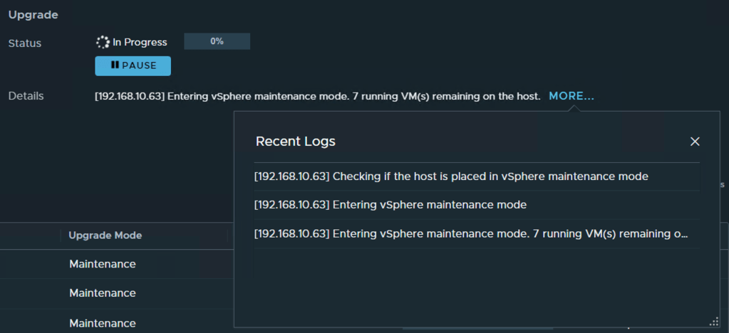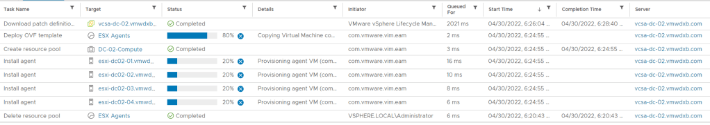 You can also monitor the progress in vCenter under recent tasks, you will see below that all four my hosts in my Compute cluster are in progress.