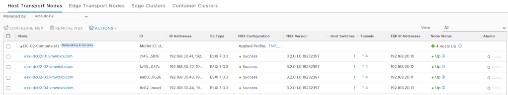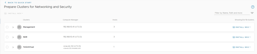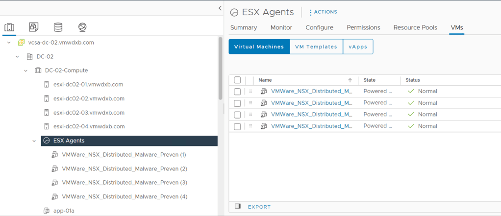 It does take a little time for all the SVM’s to be deployed, configured and powered up but once this has completed you can see their status from vCenter and the NSX Manager.