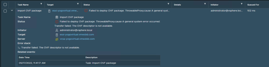 To make sure that your Web server is correctly setup you can test downloading the OVF file by simply browsing to this link.