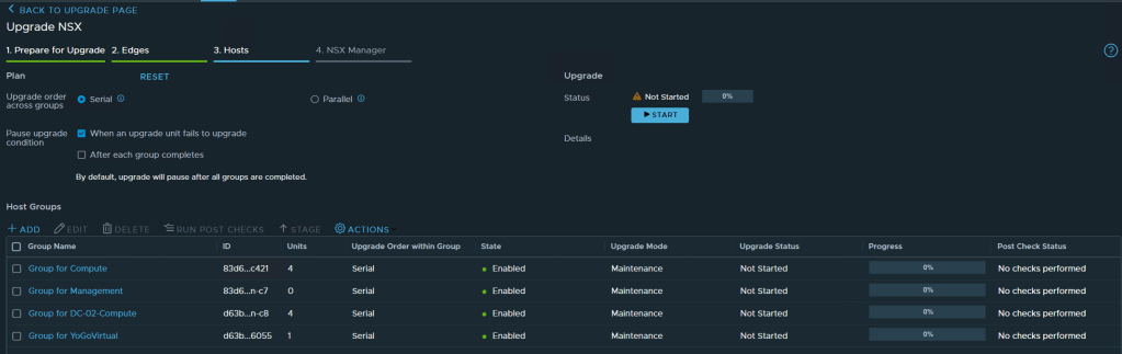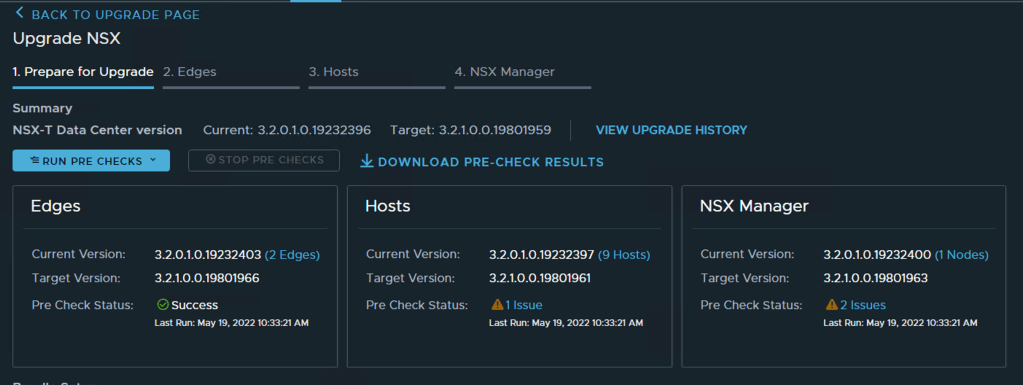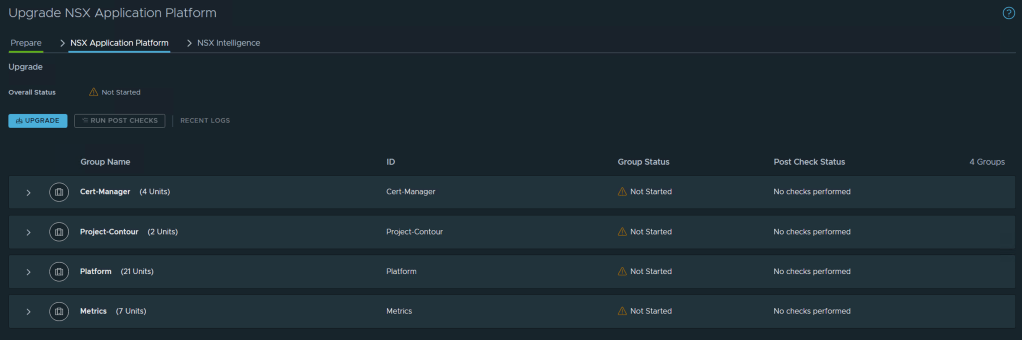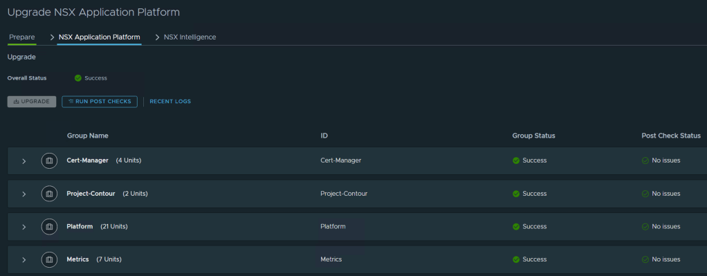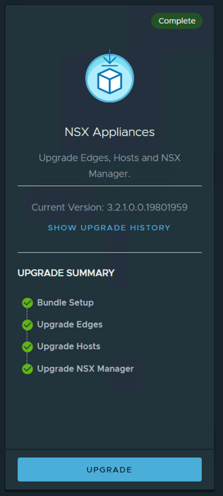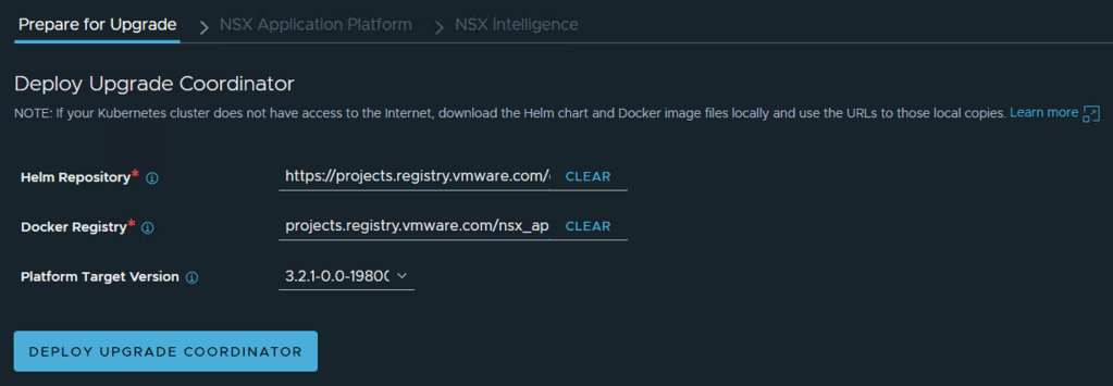 Post upgrade, I went back to the NSX-T UI and the 3.2.1 NAPP upgrade option was visible to me – now I don’t know if there was something else not working on the public Helm Repository/Docker Registry. So I have captured the exact versions of all my components for reference: