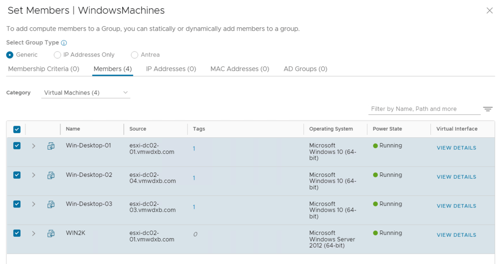 If the VM has multiple vNICs, select the correct vNIC else you can leave it to the default selected vNIC