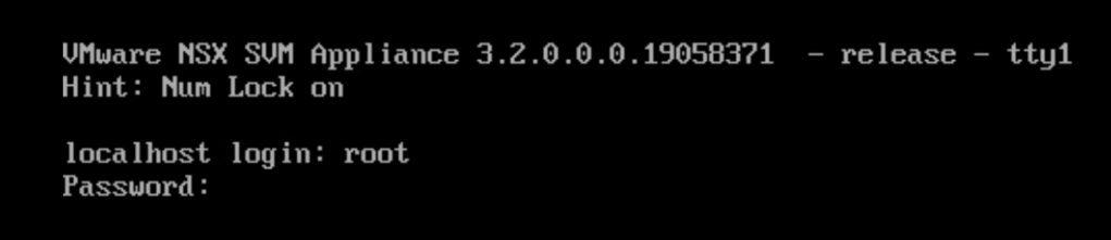 Enter the new password – note this is a local user root for the SVM and it is not synchronised to the NSX-T Manager root username/password. So take note of the changes and save it somewhere.