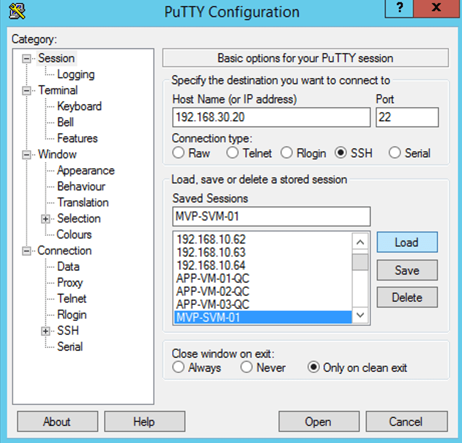 I am going to use Putty to ssh to the first SVM – 192.168.30.20. We need to select the private key for authenticating the SSH session with the SVM. Without this you will not be able to successfully ssh to the SVM.