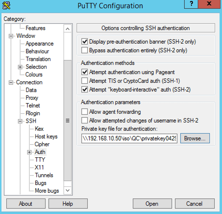 In the Putty UI scroll down to Connection – > SSH -> Auth -> Click Browse. Select your Private-Key file from your local machine or where you have saved it.
