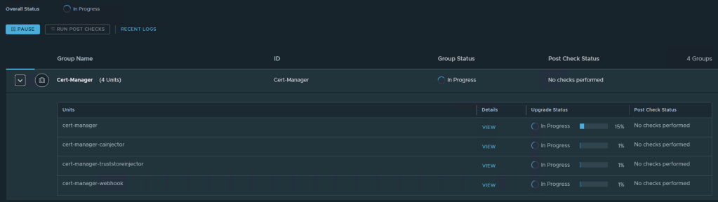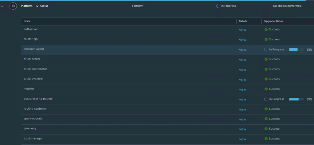 When I started out preparing for the upgrade and capturing the steps for this blog, I faced some issues with my setup. I could not see the NAPP 3.2.1 upgrade option in the upgrade co-ordinator. I asked around and tried finding some reference point but I eventually put it aside until this morning when reviewing someone else’s deployment with one of the NAPP specialists in VMware. He raised some points on vCenter versions and Tanzu Supervisor cluster versions so it prompted me to go back to my setup and make sure I had all the components running the latest versions. I noticed that I too was using an older release on my Tanzu cluster and proceeded to upgrade the Supervisor and the guest clusters.