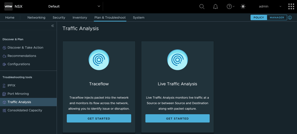 Your view might differ from mine as I have NSX Intelligence installed in this environment but you will still see the Traffic Analysis in the menu.