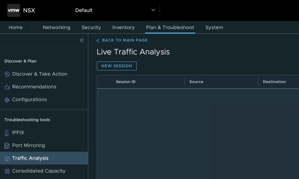 Step 1 – At the top of the NSX Dashboard select Plan & Troubleshoot